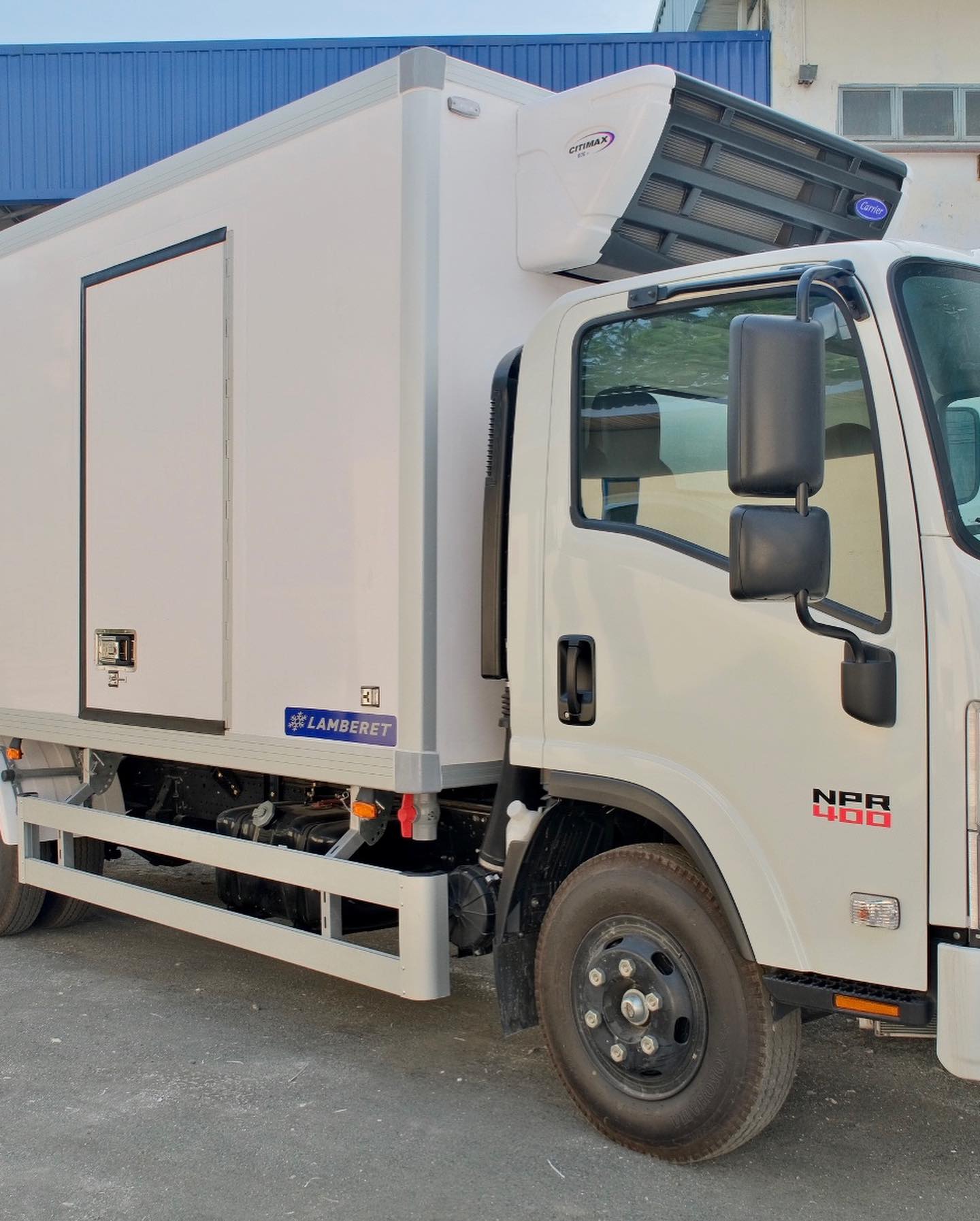 Hình ảnh bên hông của xe ISUZU NPR400 3T5 thùng đông lạnh Lamberet